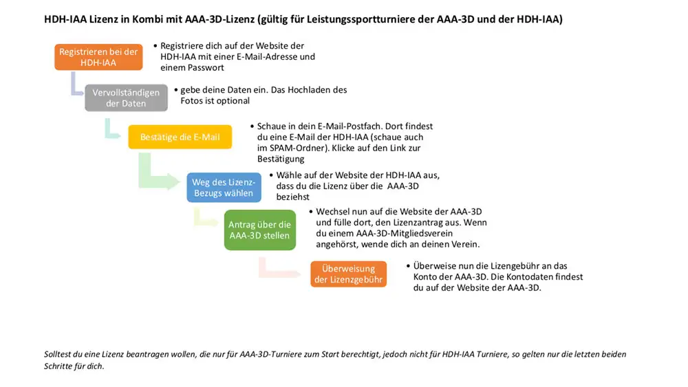 AAA-3D Lizenzen sind bis spätestens 31.März des Jahres in dem sie gültig sind (oder 8 Tage vor dem ersten Cup-Turnier des Jahres) zu beantragen und zu bezahlen.