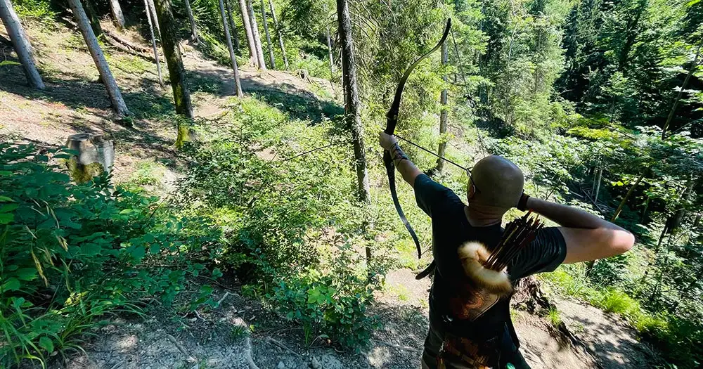 Der zweite Stopp unserer Bogensportinfo-Sommertour 2022. Gleich vorneweg… der Parkplatz bei der Kirche ist der einzige, wo man länger als 120 Minuten mit dem Auto stehen darf. Heißt; etwa 15 Minuten Wanderung bis zum kleinen Einschussplatz – auch recht.