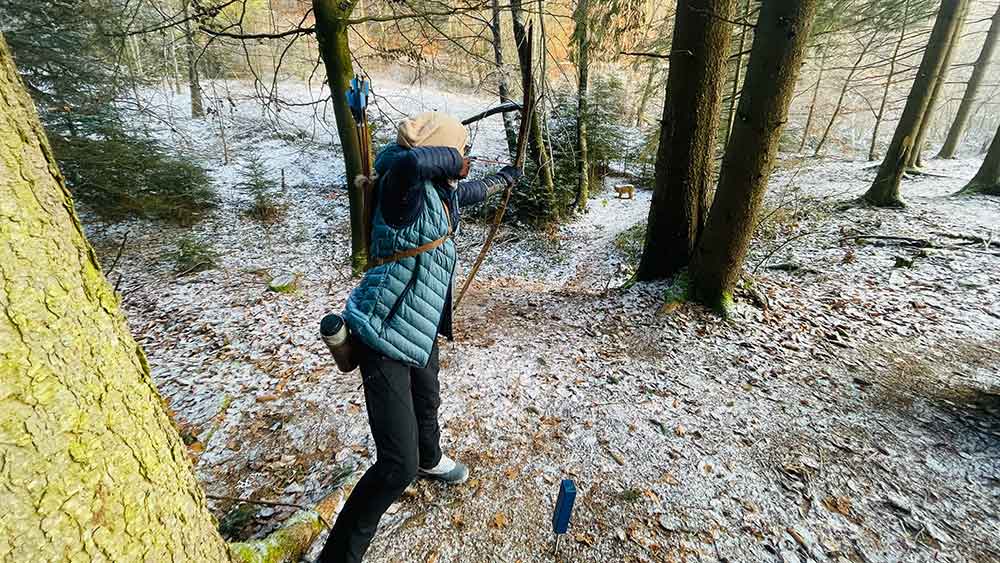 Gleich hinter dem fantasievollen Einschussplatz beginnt der Parcours im Wald. Abwechslungsreiche Schüsse lassen keine Langeweile aufkommen. Der nicht ortskundige Schütze ist auch ein klein Wenig gefordert, auf dem rechten Pfad zu bleiben.