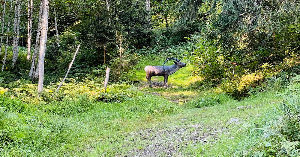Anmelden und los auf den Parcours. Die ersten Schüsse geht man entlang vom Bach bevor man sich in Richtung Berg bewegt. Es sind schon einige Höhenmeter die dieser Parcours birgt. Macht nix – genau deswegen sind wir hier im Westen.