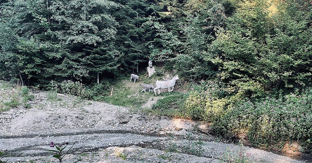 Bei Ziel 21 ist der Parkplatz schon in Sichtweite… Nein, der Parcours ist noch nicht zu Ende! Die richtig tollen Schüsse kommen noch… der springende Fisch vor dem kleinen Wasserfall, der weite Schuss zum Gorilla oder der weite Schuss über den Bach auf das Karibou. Den großen Adler nicht zu vergessen.