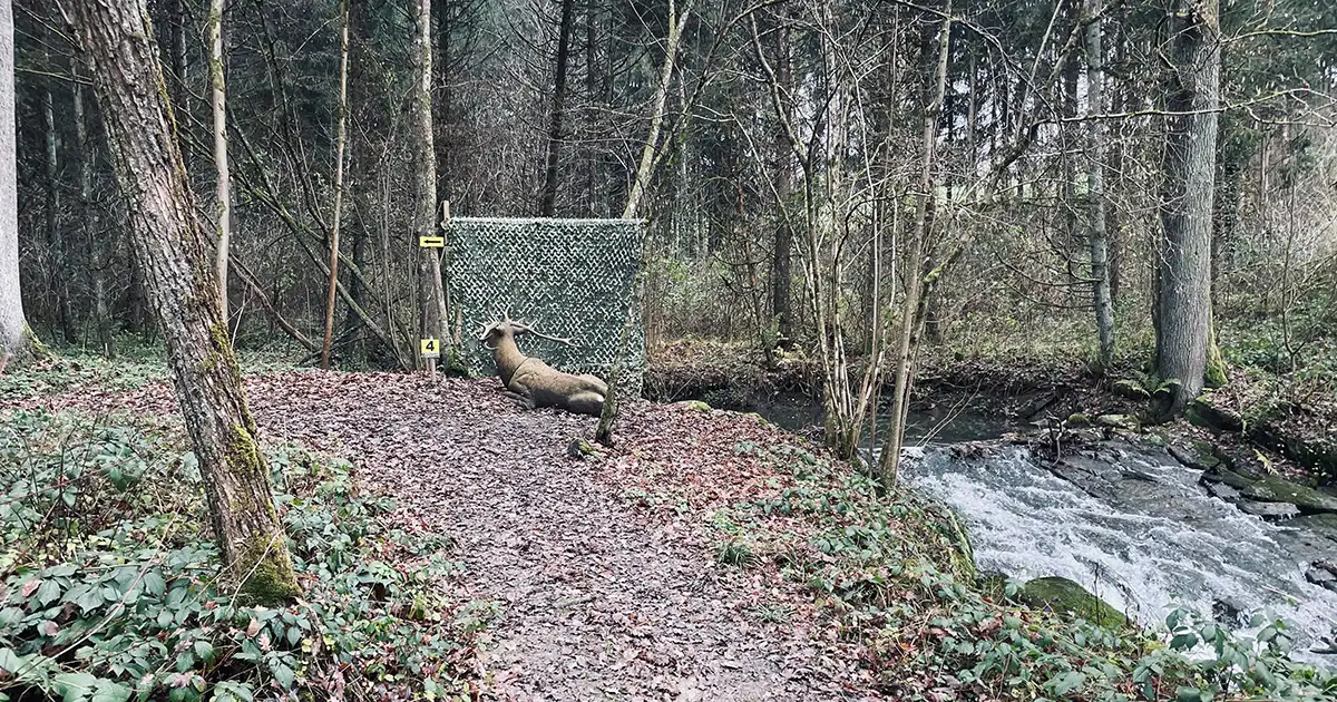Hat man, ca. bei der Hälfte, die Labe passiert und geht man den nächsten Hügel aufwärts kommt man in den "Publikumsbereich". Das Publikum besteht aus mehreren Alpakas. Mit großen Augen verfolgen diese die SchützInnen.