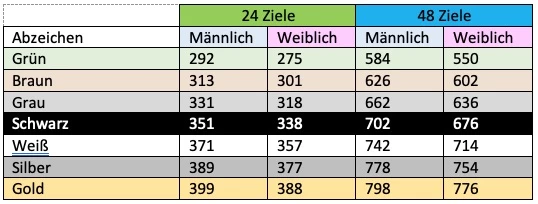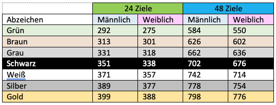 Welche Punkte muss ich für welches Abzeichen erzielen?