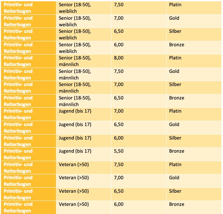 - Senioren II weiblich: 425 (Bronze), 450 (Silber), 475 (Gold), 500 (Gold + Edelstein)