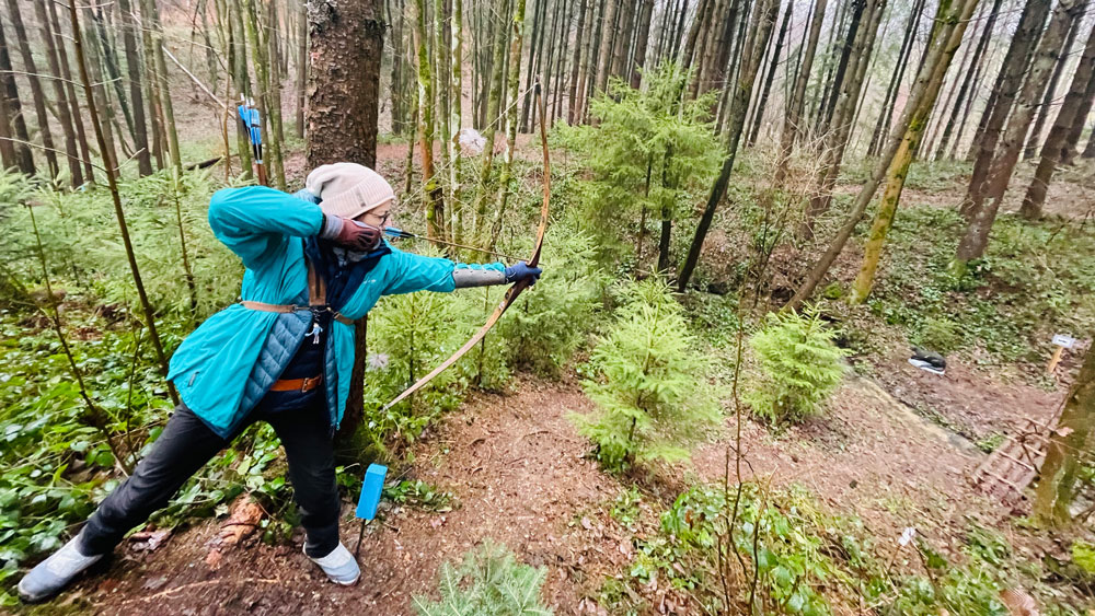 A very nice course with many familiar targets. What's striking is that the targets have been lovingly updated. For example, you'll find the matching bananas for the gorilla (!!! Don't eat them – they're made of plastic!!!) and a miniature skeleton for the vulture.