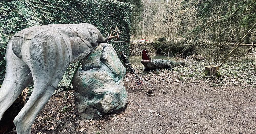 The sun is shining ... as we arrive at the course... well, just in case, we put on our thick shoes and leave the rain jacket in the car. The shooting range offers various distances, good targets, and, basically, mostly animals.